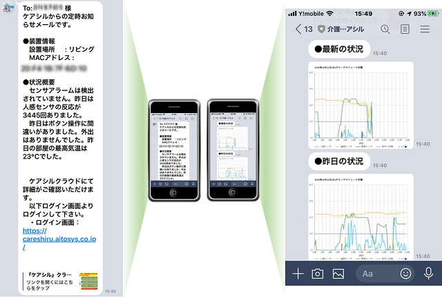 異常検出時、家族や介護者に対して電子メールで通知を行います。