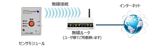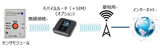 ユーザ様ご自身でモバイルルータを準備し接続することも可能ですが、見守り機器という機能上、もしもの時にネットワークが使えない状態だった、といったことは避けなければなりません。